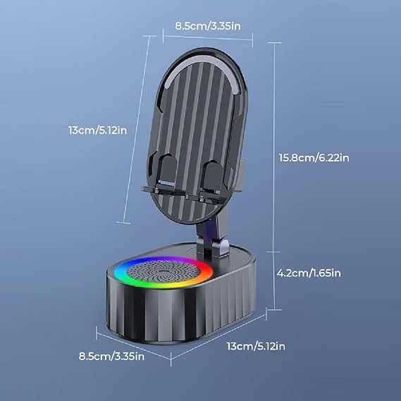 Wireless Induction Audio Speaker 5in1 Phone Holder Emergency Rechargeable with Colorful Ambient Light 300° Foldable for Tablet, Gifts for Men Women (Black)